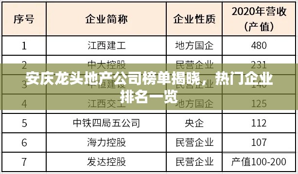 随着城市化进程的加快,房地产业在各地经济中占据了举足轻重的地位,安庆,这座历史悠久的城市,其房地产市场也在不断发展壮大,本文将为您介绍安庆的龙头地产公司排名,带您了解这片热土上的房地产风云。
