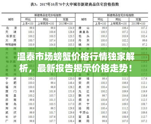 根据最新数据,温泰市场的螃蟹价格受到多种因素影响,如天气、供应、需求等,由于市场需求增加,部分螃蟹品种价格有所上涨,商家表示,随着螃蟹产量的减少,预计未来一段时间内螃蟹价格将继续保持高位。