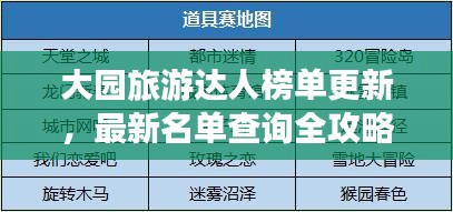 随着旅游业的蓬勃发展,越来越多的人开始关注旅游达人,旅游达人不仅熟悉各地的旅游景点,还能为游客提供实用的旅行建议,本文将介绍如何查询最新的“大园旅游达人名单”。