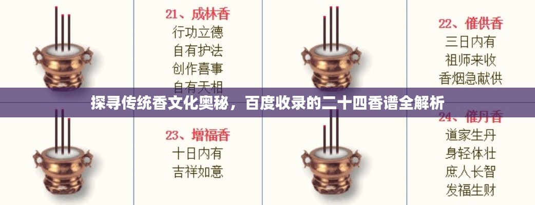 随着传统文化的复兴,越来越多的人开始关注传统香文化,而24香谱作为传统香文化的重要组成部分,更是引起了广大香友的关注,本文将通过百度搜索,带您一起探寻24香谱的奥秘。
