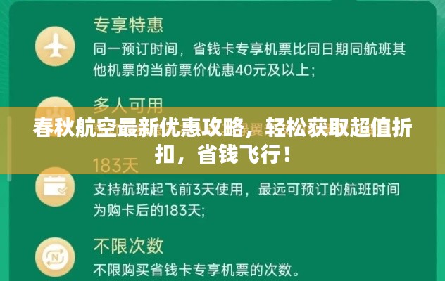 随着航空市场的竞争日益激烈,各大航空公司纷纷推出各种优惠活动以吸引乘客,春秋航空作为国内的知名航空公司,其航班折扣和优惠活动备受关注,本文将为你提供最新的春秋航空打折攻略,帮助你轻松获取超值优惠,让你的旅行更加经济实惠。