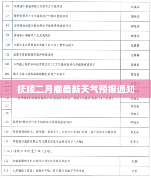 根据最新气象资料,抚顺市二月底的天气将呈现以下趋势:气温逐渐回升,降水概率增加,风力逐渐减弱,整体而言,天气状况较为适宜,但仍需关注细节变化。
