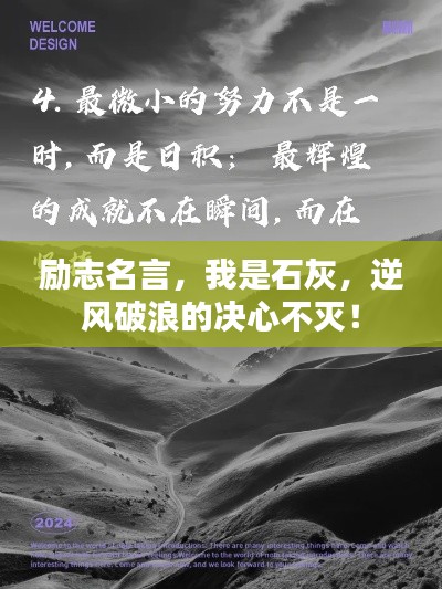 在人生的道路上,我们总会遇到各种困难和挑战,面对这些挑战,我们需要坚定的信念和不屈的精神来支撑自己,我想以“励志语录:我是石灰”为主题,分享一些能够激励我们迎难而上的思想和感悟。