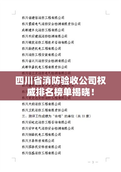 随着城市化进程的加快,消防验收工作的重要性日益凸显,在四川省,众多消防验收公司凭借专业的服务、丰富的经验,赢得了广大客户的信赖,本文将对四川省内的消防验收公司进行排名介绍。