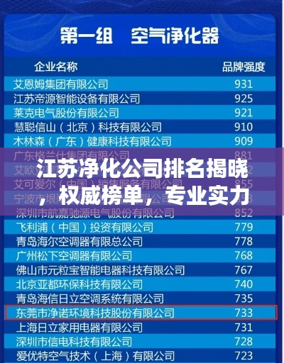 随着社会的不断发展,净化行业在江苏地区逐渐崭露头角,越来越多的净化公司如雨后春笋般涌现,为江苏乃至全国提供优质的净化产品和服务,本文将为您介绍江苏净化公司的排名,带您了解这些公司的实力与优势。