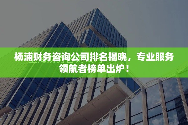 随着经济的繁荣和企业的蓬勃发展,财务咨询行业在杨浦区得到了快速的发展,越来越多的企业开始重视财务咨询的重要性,杨浦区的财务咨询公司也在逐渐增多,本文将为您介绍杨浦区财务咨询公司的排名,以帮助您更好地了解这些专业服务的领航者。
