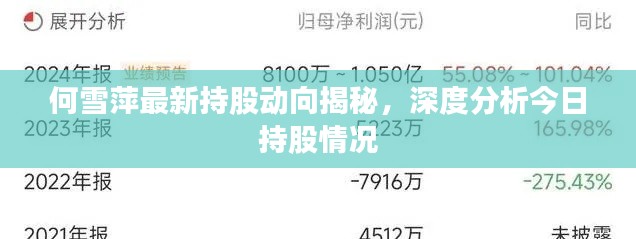 随着股市的日益繁荣,投资者对于个人持股情况的关注度不断提高,何雪萍作为一位备受关注的投资者,其持股情况更是备受瞩目,本文将针对何雪萍今日的最新持股情况进行分析,帮助投资者了解她的投资偏好和策略。