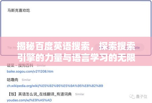 “百度一下英语怎么写”背后蕴含着搜索引擎的力量与语言学习的魅力,通过善用百度搜索,我们可以轻松积累词汇、学习语法、了解文化和进行实战练习,不断提高英语能力,在这个信息技术日新月异的时代,让我们充分利用搜索引擎的力量,探索语言的奥秘,开启一段精彩的英语学习之旅。
