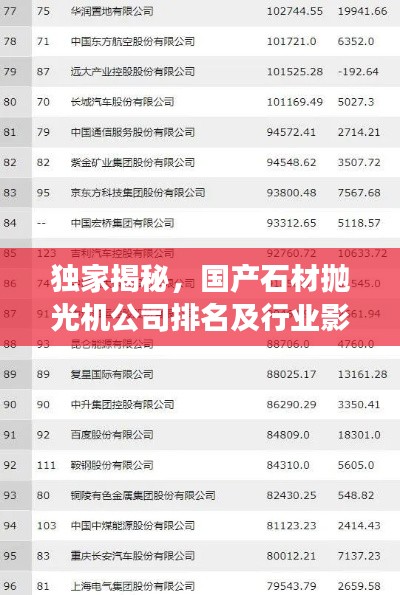 随着建筑行业的蓬勃发展,石材加工技术日益受到关注,其中抛光工艺更是关键的一环,在此背景下,国产石材抛光机企业如雨后春笋般崭露头角,本文将探讨国产石材抛光机公司的排名及其行业影响力,以助读者更好地了解这一领域的发展态势。