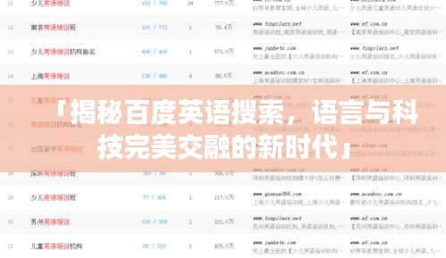 随着科技的飞速发展,我们的生活已经离不开搜索引擎,百度,作为中国最大的搜索引擎,早已成为我们获取信息、学习知识的得力助手,而今,当我们将“百度一下”与“再见英语”结合,便开启了一段语言与科技的新交融之旅。