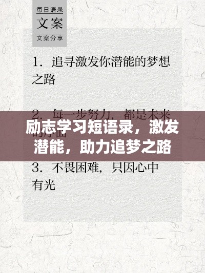 在这个日新月异的时代,学习是我们不断前行的动力源泉,励志短语录学习,旨在激发我们的潜能,鼓舞我们在知识的海洋中勇敢探索,本文将带你领略一系列励志学习的短语录,助你扬帆起航,驶向成功的彼岸。