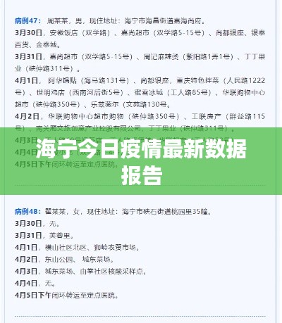 关于海宁疫情的关注度持续走高,人们纷纷关注着这座城市的最新动态,我们为大家带来最新的海宁疫情数据报告,以解答广大市民和网友的关切。