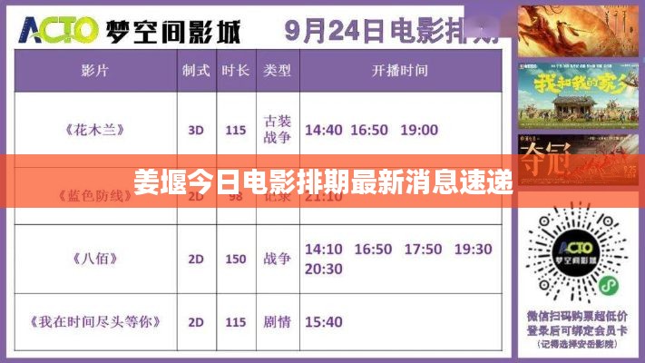 随着电影行业的快速发展,观众们对于电影的热爱也日益增长,对于电影爱好者来说,了解最新的电影资讯和影讯是十分重要的,本文将为大家带来姜堰今日影讯最新消息,以便大家及时获取最新的电影信息和观影体验。