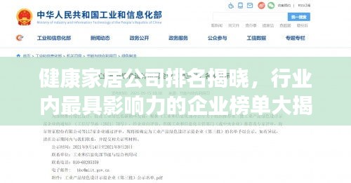 随着人们对生活品质的追求和对健康的关注度不断提高,健康家居行业迅速发展,市场上涌现出众多优秀的健康家居公司,本文将为您介绍健康家居行业的排名及行业内最具影响力的企业,以帮助您更好地了解这个行业。