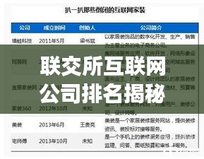 以某年度的排名为例,排名靠前的互联网公司包括XX公司、YY公司、ZZ公司等,这些公司在各自的领域内均取得了显著的成绩,如XX公司在电商领域的市场份额稳居首位,YY公司在金融科技领域持续创新,ZZ公司在社交媒体领域拥有庞大的用户群体。