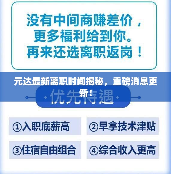 随着时间的推移,有关元达离职的传闻逐渐兴起,关于离职的原因、时间等细节,引发了各界人士的猜测和关注,在这个背景下,关于元达离职的最新消息成为了公众关注的焦点。