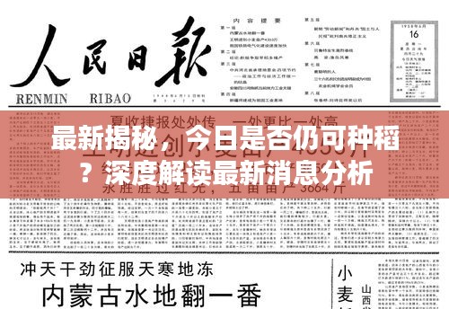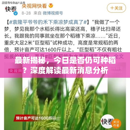 随着科技的发展和全球气候变化的影响,农业生产面临着前所未有的挑战,在这样的背景下,今日还能种稻吗?”这一问题备受关注,本文将结合最新消息,对这一问题进行深入探讨。