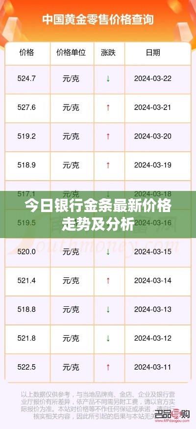 随着全球经济形势的波动,黄金作为一种避险资产,其价格变动一直备受关注,银行金条价格也有所调整,本文将为您解析今日最新银行金条价格及市场走势。