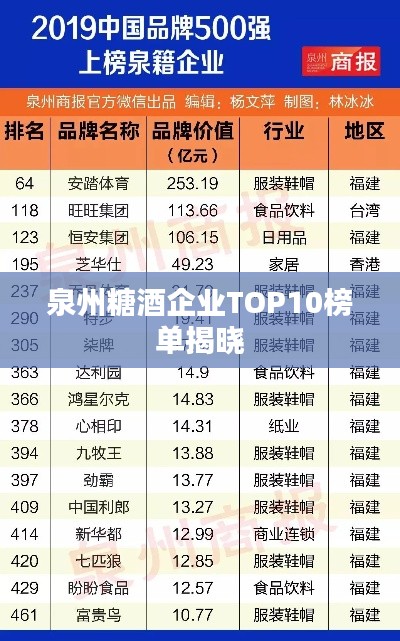 泉州,作为福建省的重要城市,是中国糖酒产业的重要基地之一,这里汇聚了众多的糖酒企业,它们以优质的产品、精湛的工艺和卓越的服务赢得了广大消费者的信赖,以下是泉州糖酒企业排名前十名,这些企业在业内具有广泛的影响力。