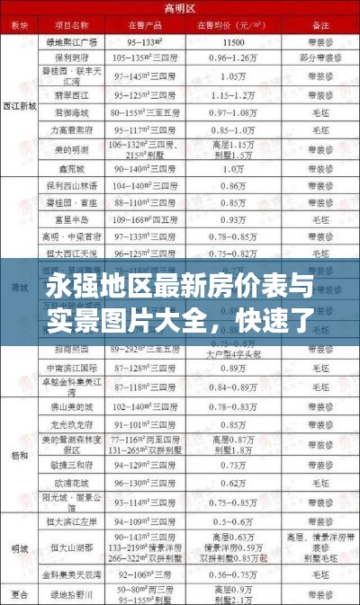 随着城市的发展和人们对生活品质的不断追求,房地产市场日新月异,本文将为您详细介绍永强地区的最新房子价格表,并附上相关图片,以便您更直观地了解当地的房地产行情。
