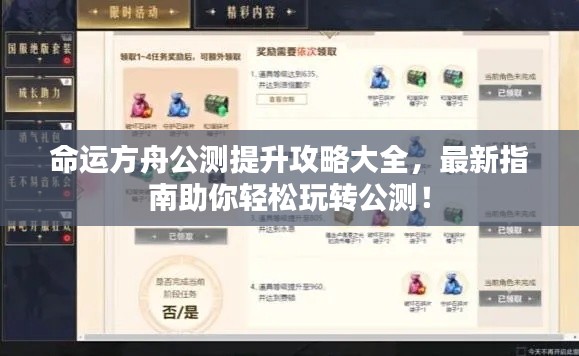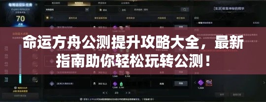 随着命运的召唤,我们迎来了《命运方舟》的公测!这款游戏以其独特的魅力和深度的策略玩法吸引了众多玩家,在这篇文章中,我们将为你提供最新的公测提升攻略,帮助你在这充满挑战的命运之海中航行。
