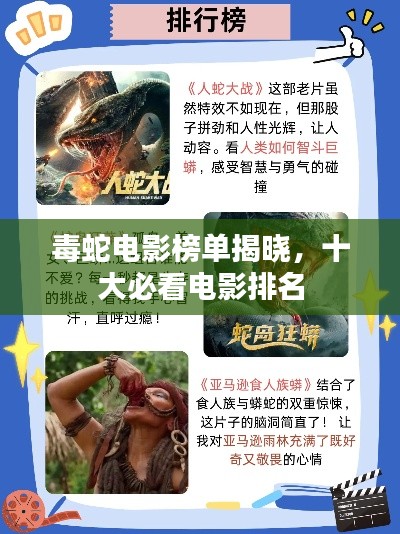 电影,作为一种艺术形式,总能带给我们各种各样的情感体验,毒蛇电影以其紧张刺激的剧情和独特的视觉体验吸引着广大观众,以下是毒蛇电影前十名的排名,带你领略毒蛇电影的魅力。