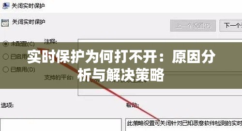 有些用户在安装或配置实时保护软件时,可能由于操作不当导致设置错误,从而使得实时保护无法正常打开。