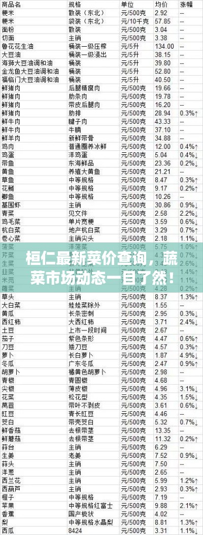 随着生活水平的提高,人们对食品价格尤其是蔬菜价格的关注度日益增加,桓仁作为东北地区的重要城市,其蔬菜价格走势更是备受关注,本文将为您带来桓仁今日菜价查询的最新价格信息,以及蔬菜市场的动态分析。