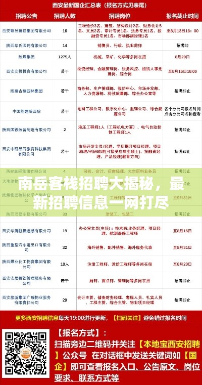 南岳客栈招人信息网最新发布了招聘信息,涉及多个岗位,包括前台接待、客房服务、餐饮服务等,这些岗位为有意从事旅游服务行业的人士提供了广阔的就业机会,招聘信息的具体内容如下: