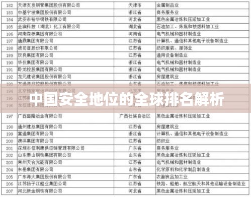 "中国世界排名安全"这一关键词,体现了中国在全球化背景下综合实力、国家安全、国际地位及全球影响力的全面提升,中国的经济实力、国际地位、国家安全战略和外交政策等因素共同构成了其在世界排名中的安全地位,中国将继续坚持和平发展的道路,推动构建人类命运共同体,为国家的安全与发展创造更加有利的国际环境。