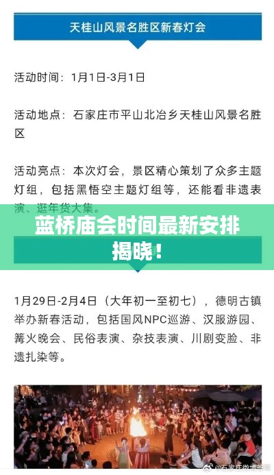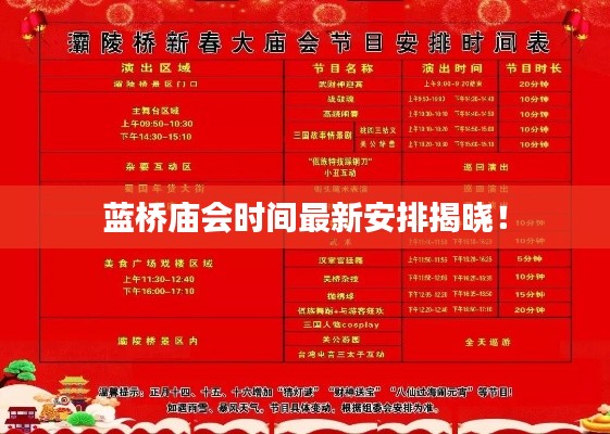 蓝桥庙会是当地历史悠久的传统活动,每年吸引大量游客前来参观,今年,蓝桥庙会时间安排备受关注,人们纷纷关注最新的消息,本文将详细介绍蓝桥庙会的背景,并结合最新消息,对今年的时间安排进行介绍。