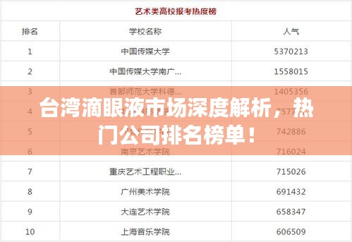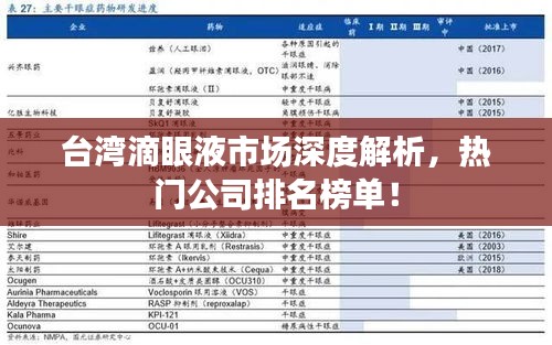 随着人们对眼部健康的日益关注,滴眼液市场逐渐扩大,台湾作为滴眼液市场的重要一环,拥有众多知名的滴眼液公司,本文将为您介绍台湾滴眼液公司的排名。