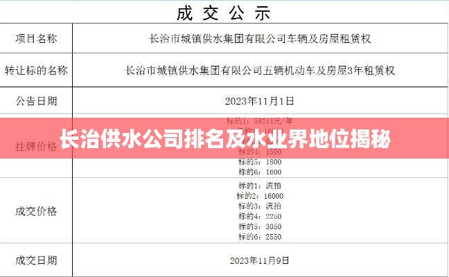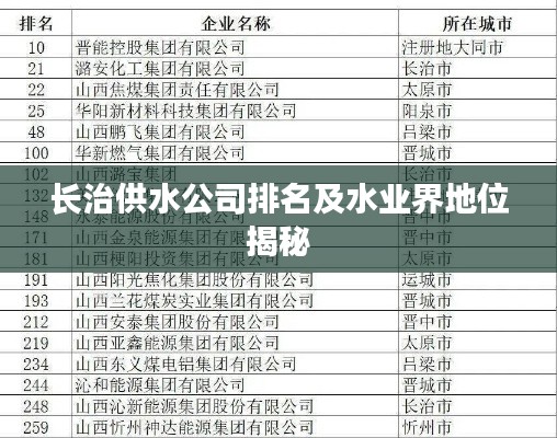 随着社会的不断发展和进步,水资源的管理与供应成为城市建设中不可或缺的一环,长治供水公司作为长治地区的重要供水企业,其排名及地位一直备受关注,本文将围绕长治供水公司的排名展开讨论,探究其在供水行业中的地位及影响力。