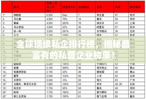 随着全球经济的发展,私营企业日益壮大,其经济实力和影响力不容忽视,本文将为您揭示世界最有钱的私企排名,带您领略这些企业的风采。