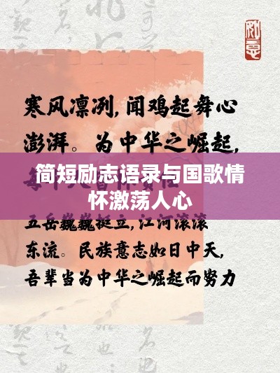 励志语录和国歌文案都是激发我们斗志、鼓舞我们前进的力量,在这篇文章中,我们结合二者,希望能够更好地激发大家的爱国热情和对未来的憧憬,让我们共同铭记这些简短的语句和文案,坚定信念,勇往直前,为实现中华民族的伟大复兴而努力!