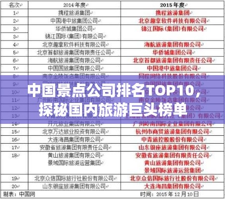 旅游行业在中国持续繁荣,吸引了大量的游客,随着旅游业的发展,许多景点公司也崭露头角,以下是当前中国景点公司的排名前十名,这些公司在景区开发、管理、服务等方面表现出色,深受游客喜爱。