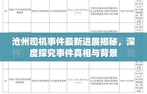 一起发生在沧州市的司机事件引发了广泛关注,网络上关于此事件视频播放量持续攀升,成为公众热议的焦点,本文将对这一事件进行详细的梳理,探究事件背后的来龙去脉,以及它对社会产生的影响。