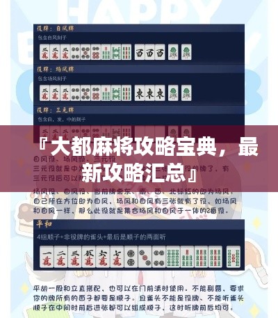 麻将,作为一种传统的中国桌游,已经有几百年的历史,它不仅仅是一种娱乐方式,更是一种智慧的较量,大都麻将作为麻将的一种流派,具有独特的规则和策略,本文将为大家带来大都麻将的攻略大全,帮助大家提高游戏水平。