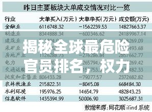 随着全球政治格局的不断演变,各国官员的角色与职责日益凸显,在这其中,有一些特殊的官员因其所处的特殊位置和环境,被认为是世界上最危险的官员,他们面临的不仅仅是政治风险,还有生命安全的威胁,我们将探讨这些世界上最危险的官员排名及其背后的原因。
