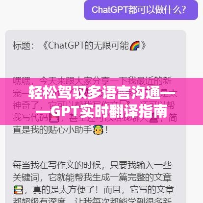 标题:轻松驾驭多语言沟通——GPT实时翻译指南