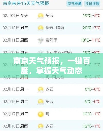 随着科技的进步和互联网的普及,天气预报已经成为我们日常生活中不可或缺的一部分,对于南京这座历史文化名城来说,了解天气情况更是出游、工作、生活的重要参考,如何通过百度获取南京天气预报呢?就让我们一起探讨一下。