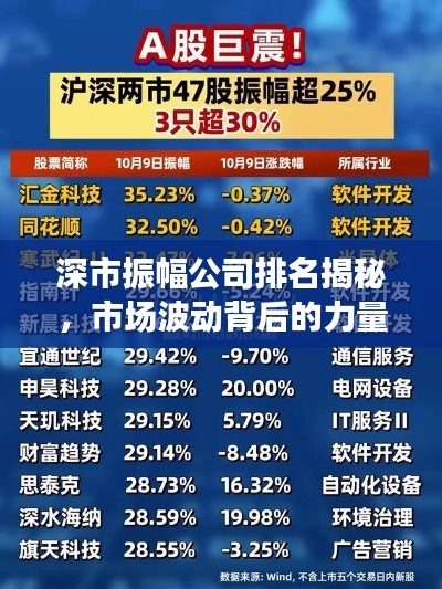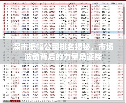 随着金融市场的日益繁荣,投资者对于市场动态的关注度不断提高,在深市市场中,振幅作为一个重要的指标,反映了市场的波动情况,本文将围绕“深市振幅公司排名”这一主题,探讨深市振幅的概念、计算方法及其在市场上的重要性,同时分析振幅排名背后的因素,以帮助投资者更好地了解市场动态。