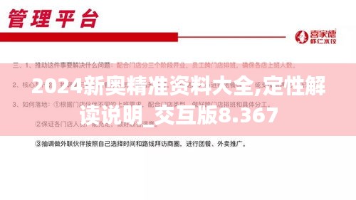 “2024新奥精准资料大全,定性解读说明_交互版8.367”是一份重要的澳门政策文件,集合了至2024年各领域政策文件、资料,并提供精准的解析说明,以便更好地理解各项政策,辅助政策制定和执行。政策,或者说规则,不同部门出台,伴随社会发展而更新。但温情、共情,在大原则和框架下,我们更应该以互动式的综合视角,全方位、多元化地解读这些政策和文件。