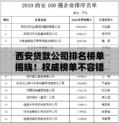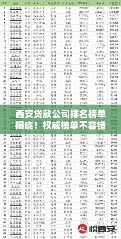 随着金融市场的发展,越来越多的人需要贷款来解决各种需求,在西安这座古老的城市里,现代金融服务也在不断进步,许多贷款公司如雨后春笋般涌现,本文将介绍西安可以贷款的公司排名,为广大市民提供一份参考。