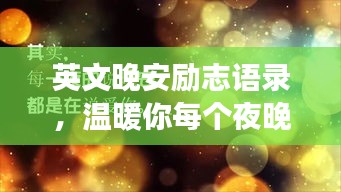 这些英文短句将励志与晚安融为一体,为我们带来温暖与力量,在夜幕降临之际,选择一句适合自己的励志语录,让心灵得到安慰,为明天注入更多的活力,愿我们都能拥有一个美好的夜晚,迎接充满希望的明天,晚安!愿你的梦想成真!