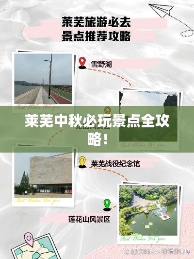 4、出租车:在莱芜市区内,出租车是一种便捷的交通方式,游客可以在出租车停靠点随时拦车,也可以使用网约车服务,在中秋节期间,由于游客较多,建议提前规划好行程,六、住宿推荐莱芜市区内有多种住宿选择,包括星级酒店、经济型酒店和民宿等,游客可以根据自己的需求和预算选择合适的住宿方式,在中秋节期间,酒店预订可能会比较紧张,建议提前预订,七、旅游注意事项1. 遵守景区规定:在游玩过程中,请遵守景区的各项规定,注意自身安全和他人的安全,2. 防晒保暖:中秋时节天气多变,请注意防晒和保暖措施,3. 文明旅游:尊重当地的文化习俗和风俗习惯,保持环境卫生整洁,八、结语莱芜中秋旅游攻略就为您介绍到这里,在这个美丽的中秋时节,带上家人和朋友一起来莱芜游玩吧!祝您旅途愉快!