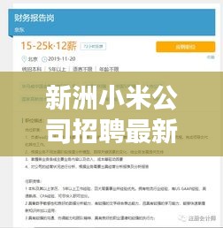随着科技的飞速发展和市场的不断拓展,新洲小米公司正处于飞速发展的黄金时期,为了满足业务发展的需求,公司现正广泛招募各类优秀人才,本文将为您详细介绍新洲小米公司的招聘最新信息,包括招聘的岗位、要求以及公司为员工提供的福利待遇等。