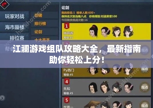 希望通过本文的攻略指南,玩家们能够在江澜游戏中更加顺利地组队,享受到更好的游戏体验,不断学习和适应是提升游戏水平的关键,祝愿所有玩家都能在江澜游戏中找到自己的乐趣。