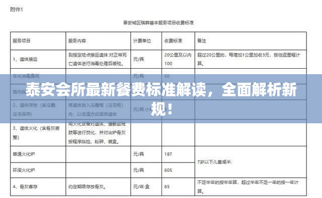 泰安,作为山东省的一个重要城市,其会所餐饮文化日益繁荣,为了满足市场需求,规范会所餐费标准,最新的餐费标准规定应运而生,本文将详细介绍泰安会所餐费标准最新规定,包括内容、背景、意义等。