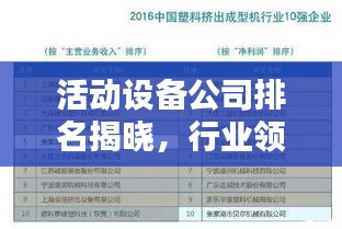随着社会的不断发展,活动设备行业逐渐崭露头角,成为支撑各类活动成功举办的关键环节,本文将根据市场影响力、产品质量、创新能力等多个维度,对活动设备公司进行排名,揭示行业领军者的力量。